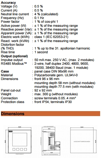 Multipurpose Meter Operation in 1- or 3-phase mains power systems, 1 Impuls output optional, supply voltage 24 V DC or 230 V AC, panel mounting |