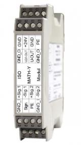 The TSA-Arithmetic Modules offer isolated combination of voltage signals. One of the four basic arithmetic operations as well as power (multiplication with adjacent averaging) are available. Depending on the base configuration the module has voltage and current outputs.